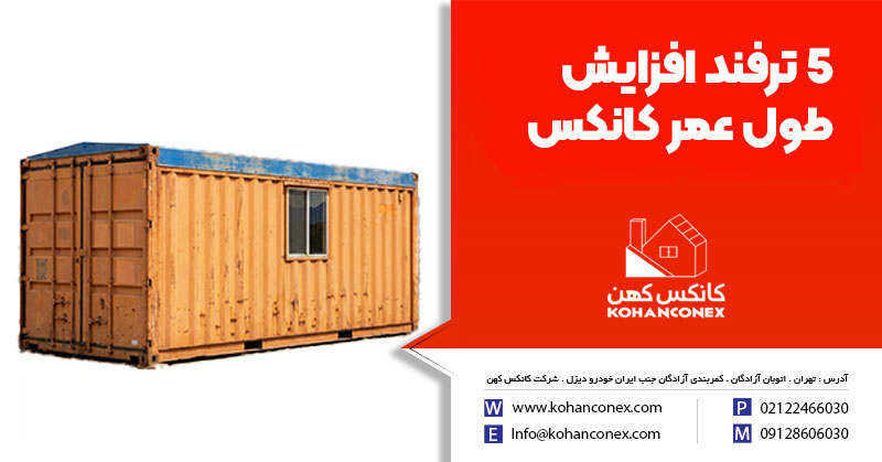 گروه صنعتی کانکس کهن فعالیت های مختلف دیگری نظیر خرید و فروش کانکس دست دوم و همچنین خرید و فروش کانتینر دست دوم را نیز دارد و با بررسی و تایید کارشناس مربوط قیمت کانکس خدمت مشتریان محترم ارائه خواهد شد . شرکت کانکس کهن بصورت رایگان خدمات مشاوره و بررسی نمونه تولیدات خود و انتخاب کانکس و فضای مورد نظر جهت مصرف مشتریان را انجام خواهد داد.